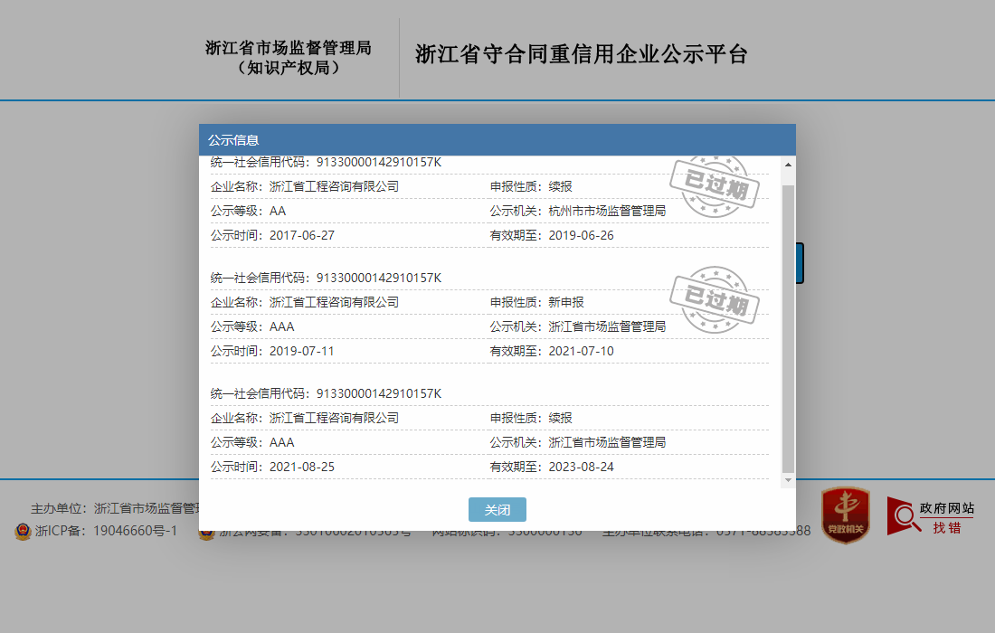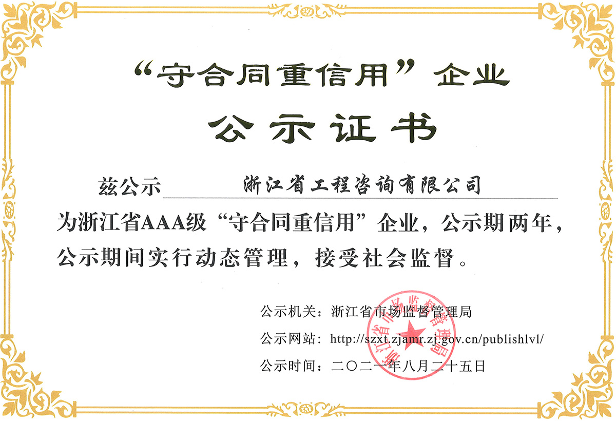 近日,根据《浙江省“守合同重信用”企业公示办法》规定,由企业自愿申报、系统自动测评、各地核实推荐、大数据比对和双随机实地核查,我公司被评为2021年浙江省AAA级“守合同重信用”企业。