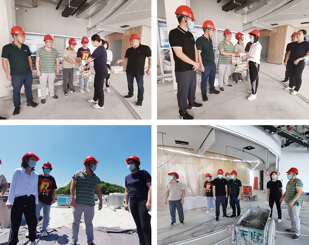 2022年8月3日、8月4日,公司执行总经理杨哲野、办公室主任金美青和公司副总工蒋挺、郑卫红等一行,代表公司党总支、公司工会和公司领导以及各职能部门,到公司直管项目现场开展夏季高温慰问活动,看望并慰问坚守在工作一线的项目部同事们,给大家送去了防暑降温用品。