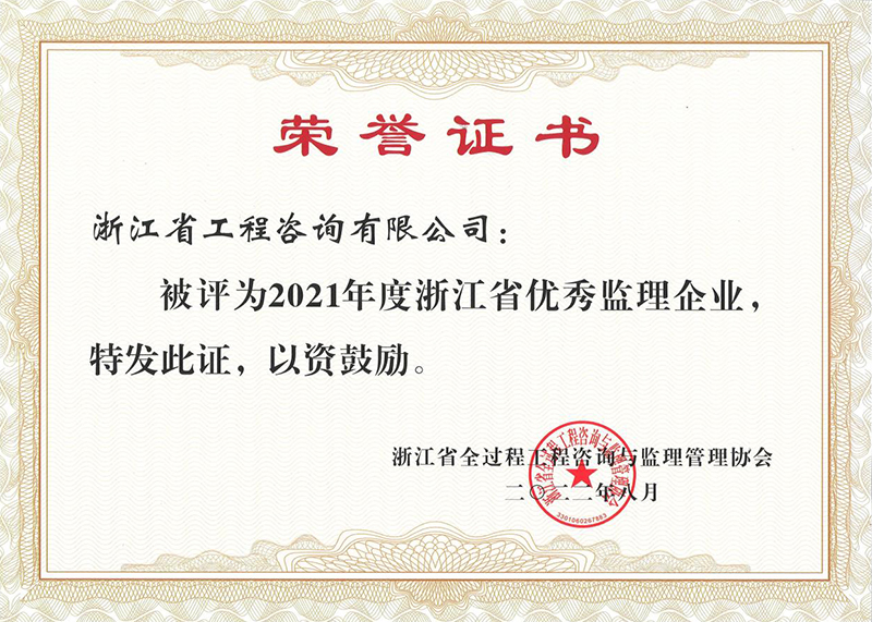公司已连续多年获得“浙江省优秀监理企业”荣誉称号,这不仅是行业协会对我公司监理工作的认可,更是对公司持续提升品质服务的鼓舞和鞭策。公司全体员工将继续保持严谨专业的职业素养,不断开拓进取,发挥公司整体优势,为推动行业进步和发展贡献出自己的力量。