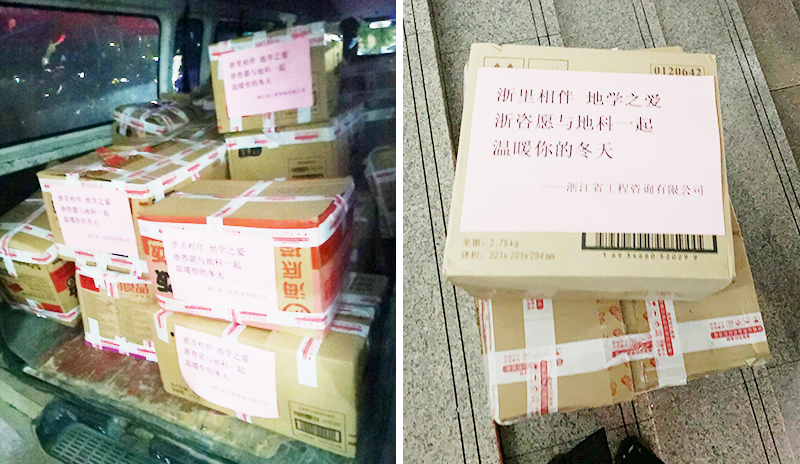 2022年11月27日,浙江大学紫金港校区发现新冠检测阳性人员,为了及时遏制疫情的扩散,学校立即开始实行校园封闭式管理。因疫情突发,校内防疫生活物资等需求量较大。了解到相关情况后,公司领导商讨决定向浙江大学地球科学学院捐赠爱心物资,帮助解决校内师生的生活所需。公司办公室积极协调联系各方,紧急采购食品、暖宝宝和卫生用品等物资,在分装完成后的第一时间将1250份爱心物资送往浙大地科学院师生手中。