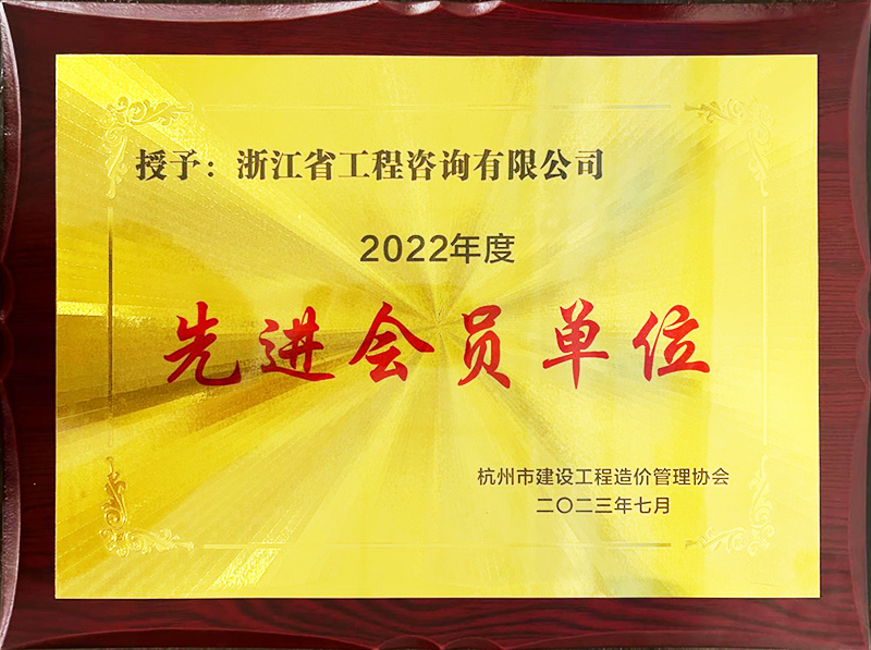 公司取得杭州市建设工程造价管理协会2022年度先进会员单位荣誉称号
