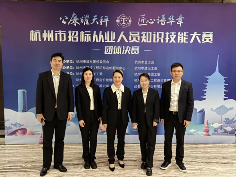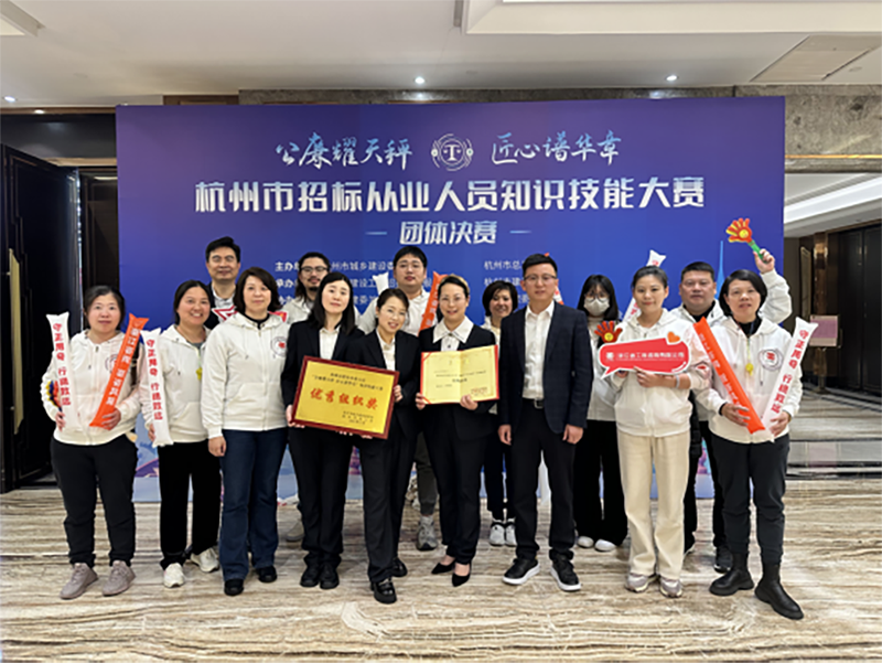 2023年11月28日下午,杭州市招标从业人员“公廉耀天秤 匠心谱华章”知识技能大赛团队决赛圆满落下帷幕。本次大赛由杭州市城乡建设委员会、杭州市总工会主办,杭州市建设工程招标造价服务中心、杭州市建设工会承办,杭州市建设工程造价管理协会等单位协办。本届招标从业人员知识技能大赛是首次针对全市招标从业人员举办的知识技能大赛,分为个人赛和团体赛两个阶段。杭州市共有131家企业1433名造价从业人员报名参赛。在11月14日举办的个人决赛中,200名选手为个人而战、为团体而战,经过激烈角逐,我公司从众多参赛企业中脱颖而出,成为参加团体决赛的十家企业之一。