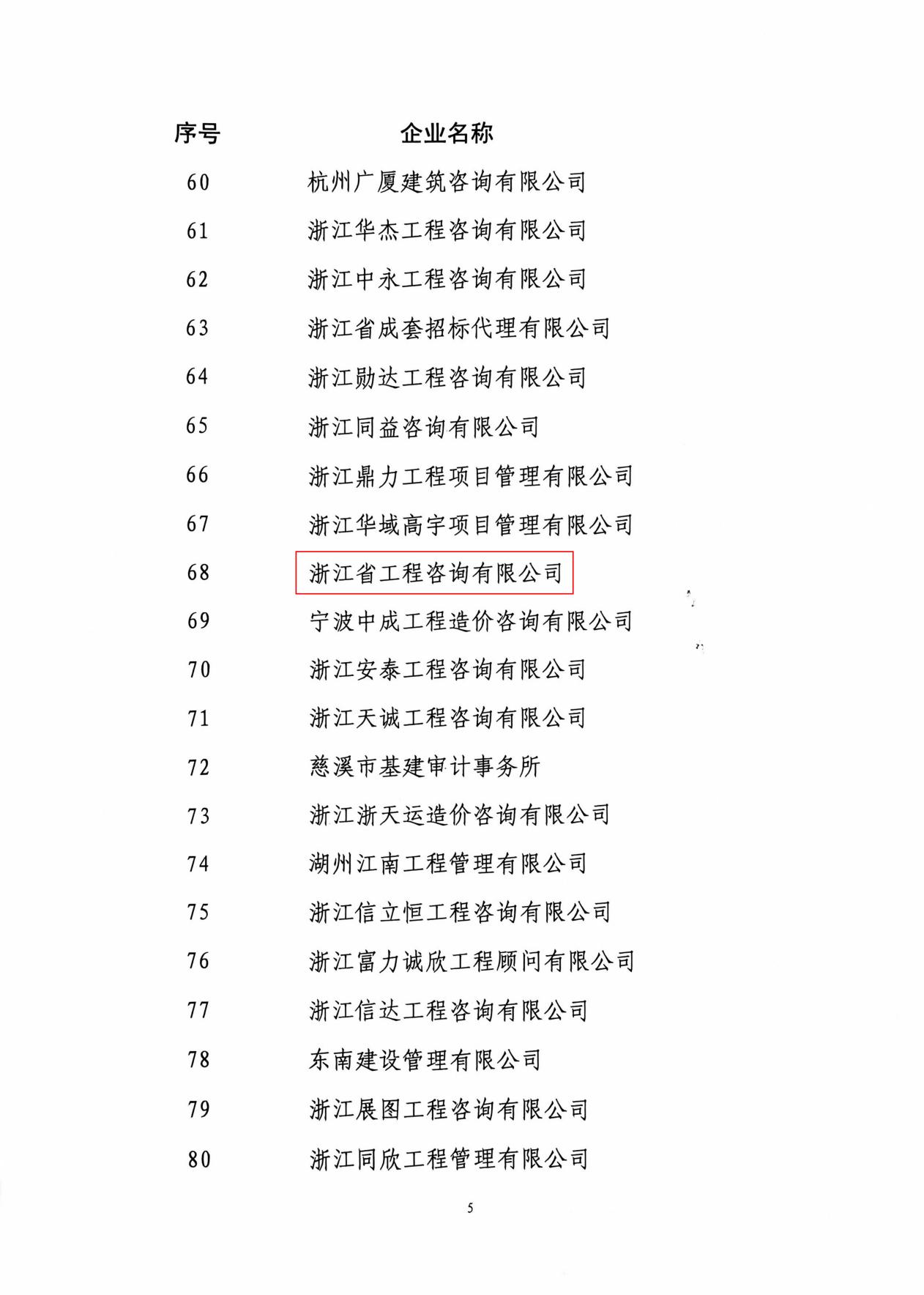 近日,根据《住房和城乡建设部办公厅关于开展2023年工程造价咨询统计调查的通知》(建办标函(2023)332号)要求,浙江省组织开展了2023年工程造价咨询年度统计调查工作,并公布了2023年浙江省工程造价咨询企业工程造价咨询营业收入2000万元及以上的规上企业名单,我公司在本次公布的2023年浙江省工程造价咨询规上企业名单中。