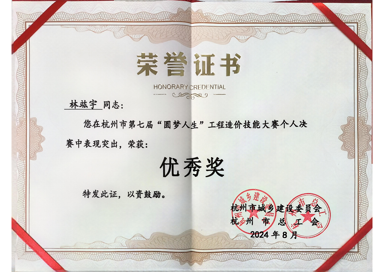7月24日下午,杭州市第七届“圆梦人生”工程造价技能大赛暨浙江省第五届工程造价(数字)职业技能竞赛杭州选拔赛个人赛决赛正式举行。作为全省造价人员两年一度的重要赛事,今年的造价技能大赛吸引了2227名的杭州市造价从业人员参与本届省级初赛,最终203名选手凭借自己过硬的实力,顺利入围今天的杭州市个人赛决赛,我公司造价咨询人员也入围了此次决赛。