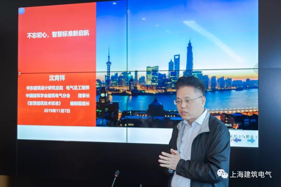 首先,中国建筑学会建筑电气分会理事长沈育祥致辞。 沈总对上海建筑电气的工作给予了充分肯定,并希望全体委员能够团结一致,再接再厉,创造出更好的成绩。