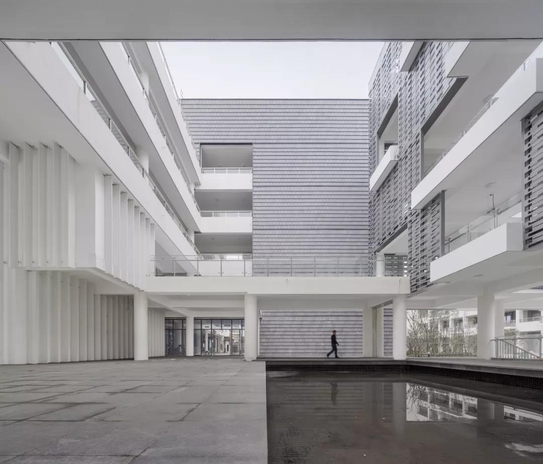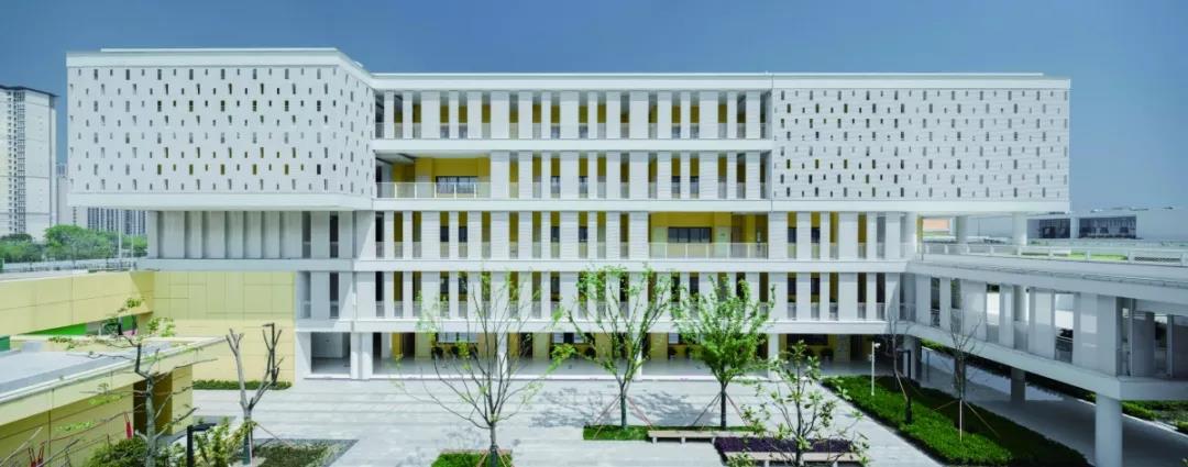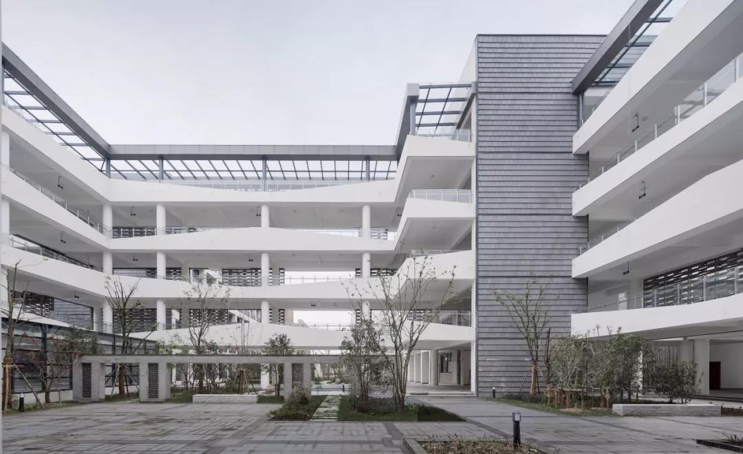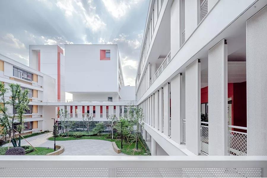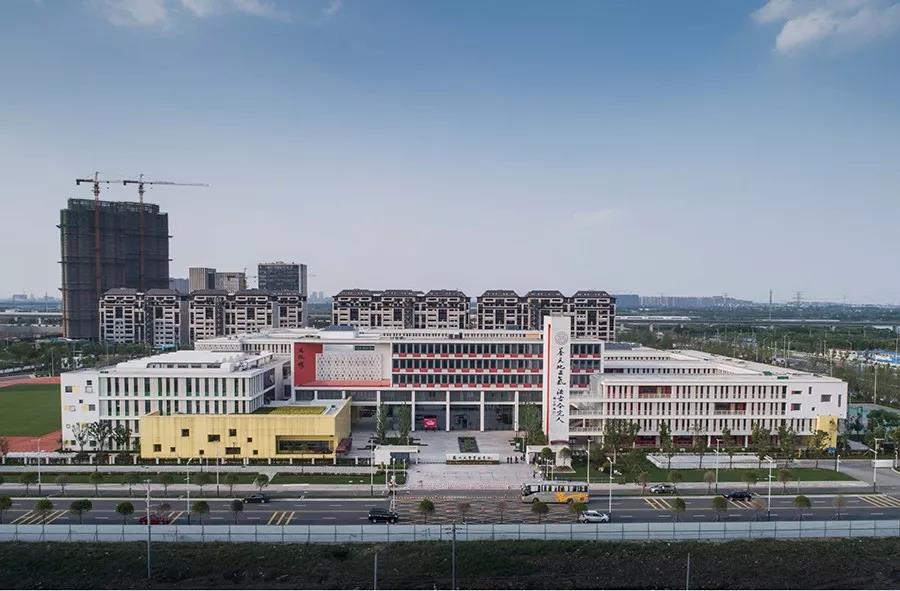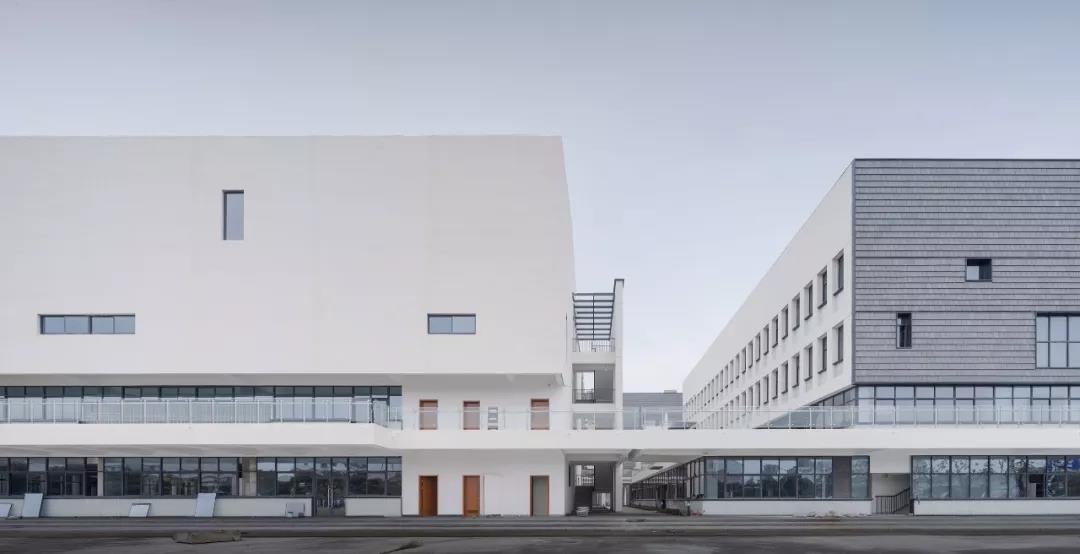 作为苏州高铁新城核心区的第一座九年一贯制的的校园综合体,在功能上,中小学既要做到分区明确,又要共享、共用。在形态上,展现了新城区的未来属性。高铁新城第一中小学的校园,巧妙的将“泛在学习”和景观之间彼此渗透,利用奇妙的空间关系,使环境在校园中流动,而“泛在学习”空间也突破了走廊的空间属性,通过多样性空间,将“使用即学习、学习即使用”的概念得以实现。