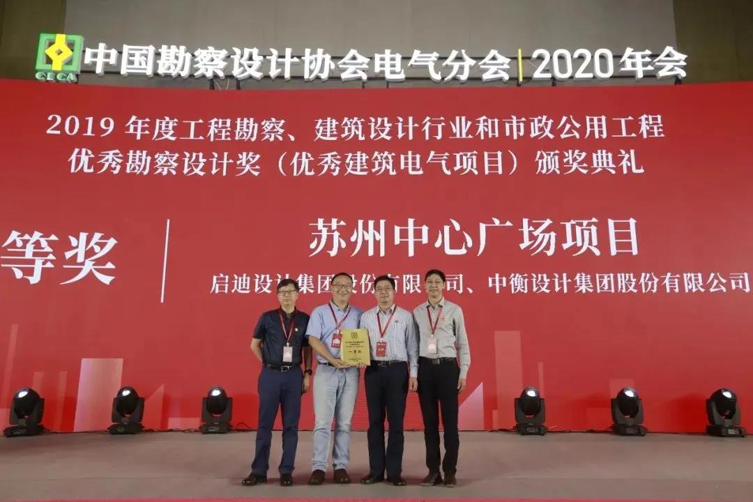 中衡设计集团股份有限公司电气总工程师、中国勘察设计协会电气分会监事会监事及常务理事傅卫东受邀参加此次会议,并与启迪设计集团股份有限公司电气总工程师颜宏勇共同作《苏州中心那些事儿》学术报告。在表彰大会上,中衡设计与启迪设计合作完成的苏州中心广场项目获一等奖,中衡设计中国农业银行苏州分行项目获二等奖。