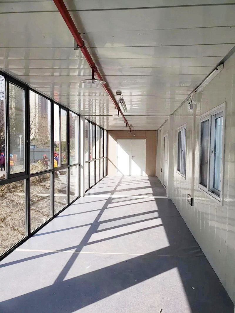 南通第六人民医院隔离病房扩建工程,与普通应急病房扩建不同,包含了负压病房、ICU、接诊区、影像科、检验科、预留手术区、医用垃圾、医用气体等功能。建筑面积约1.38万平方米,使用集装箱体869个,混凝土5600立方,建筑钢筋283吨,钢结构133吨,病房200床,ICU20床,是一间功能完整的传染病应急医院。