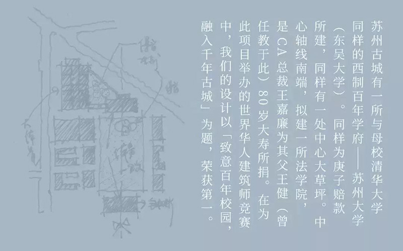 ‘延续’什么?这似乎比较清楚。正功长期在苏州工作,以苏州园林为代表的优秀中国传统文化,很自然地成了他丰富的创作源泉,也是‘延续’的基点。而且我特别注意到,他对苏州传统建筑文化的‘延续’,已经突破了‘形’——诸多粉墙黛瓦的局限,而是把苏州园林的精神——意象表达和情境创造作为自己创作的着力点。无论是独墅湖会议酒店、苏州中学、旺山茶博园,还是远在四川的绵竹历史博物馆,正功都非常重视传统建筑语言和空间的现代转译、重视新材料运用和简练的细节处理,使这些建筑体现了一种谦和含蓄的自然之美,蕴含着一种书卷气。而正是这种审美取向的普适性,也化解了他所说的‘当代全球性语境与在地性建造的冲突’。这对当前普遍存在的创作之‘惑’,作了很好的回应。”