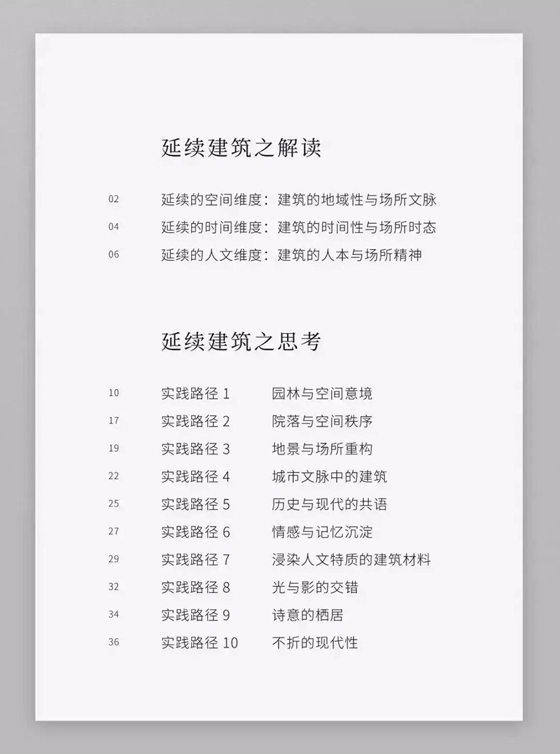 此外,本书的另一个特色,是它提供了十项有实践价值的设计指导路径。“延续建筑”是当代“全球性语境与在地性冲突矛盾”的一种解答。以现代性作为创作的立场,以空间、时间、人文三个维度去解读传统,后以当代的形式表达与展现,追求立足于当下的创新,而最终形成“园林与空间意境”等具有指导性的设计路径。