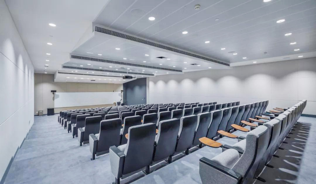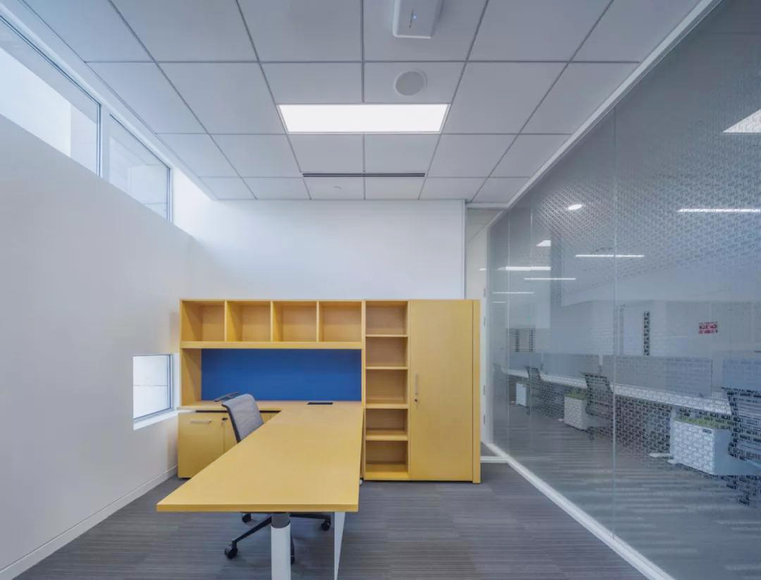 除了整体建筑设计的先进理念,创新楼内部教学和实验室尤为独特!融合了各种创新性设计理念,实验工艺与设施达到国际先进水平。位于创新楼二楼的生物实验室,配置有二氧化碳培养箱、离心机、超低温冰箱、DNA成像系统、紫外分光光度计、聚合酶链式反应仪、酶联免疫吸附剂测定仪等各类先进的教学实验仪器,可为学生提供各类生物实验课。同时,实验室内设置有通风柜变风量气流追踪系统,该系统采用了响应时间只有1秒的文丘里阀及变风量控制系统,可根据每个通风柜工作状态的变化瞬间调节所属空间内的排风量,并自动调节区域内的送风大小,在保证实验室安全的前提下,让实验室更舒适节能。创新楼中所有的实验室都由中衡设计依照国际标准负责设计、采购;牵头指导施工、安装、调试完成,体现了全过程的高水准。